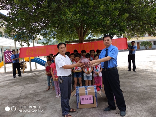 在六一儿童节来临之际,531日上午,田东县检察院爱心人士到思林镇定阳村小学给学生送爱心,捐赠学习用品、体育用品等物品一批。